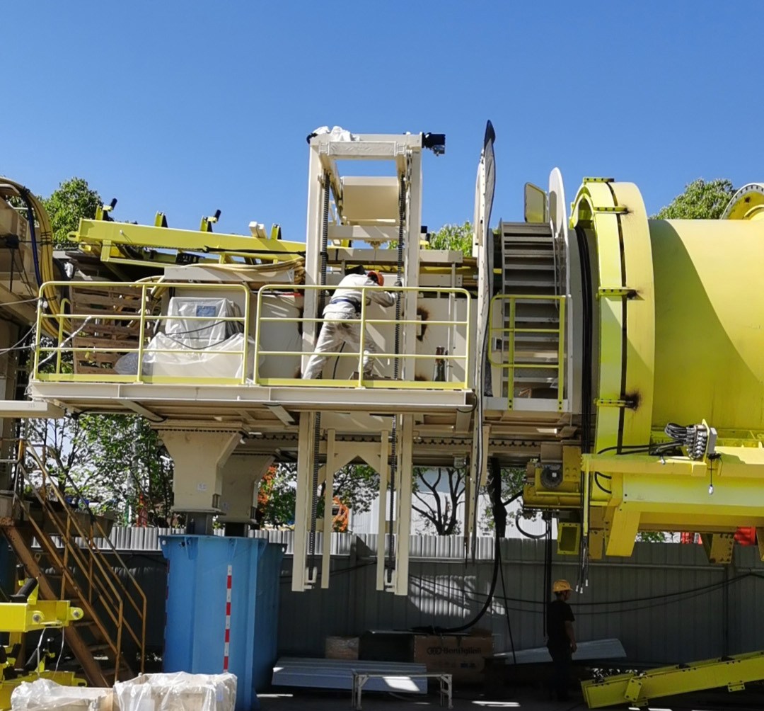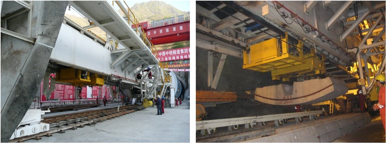 仰拱塊吊機是TBM的主要配套設(shè)備之一,用于仰拱塊的吊運和安裝就位調(diào)整、底部殘碴吊運。設(shè)備包含液壓動力站及控制系統(tǒng),結(jié)構(gòu)緊湊,動作復(fù)雜,使用頻繁,可靠性高。遙控操作。