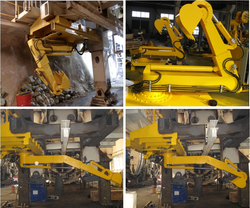 兩套噴混系統(tǒng)完全相互獨立。每套系統(tǒng)的環(huán)形大圈可水平移動,環(huán)動小車在大圈上帶動伸縮臂240度旋轉(zhuǎn),伸縮臂帶動噴頭機構(gòu)伸縮,噴頭機構(gòu)可實現(xiàn)噴頭的三個方向旋轉(zhuǎn),完成噴混所需的全部動作。設(shè)備性能穩(wěn)定、抗污染力強、可靠性高。包含液壓泵站和控制系統(tǒng)。遙控操作。